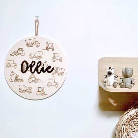 Hanging Name Sign - Large - Construction Vehicles