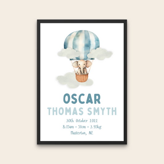 Birth Poster - Hot Air Balloon - Elephant